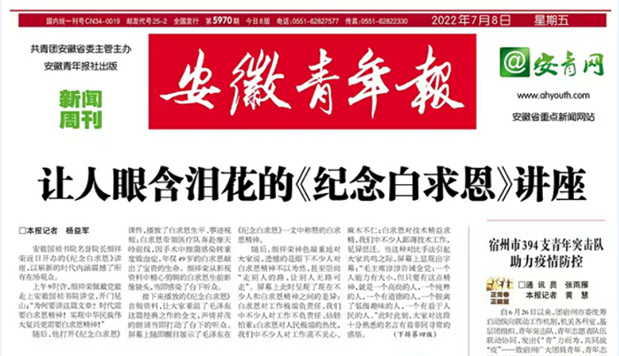 安徽356体育网站书院名誉院长颜祥荣近日开办的《纪念白求恩》讲座,以崭新的时代内涵震撼了所有在场观众。