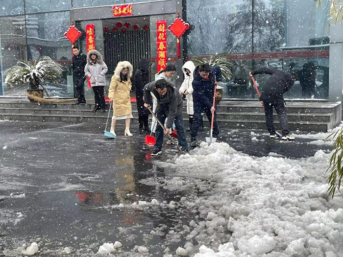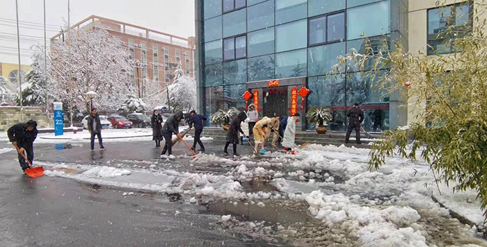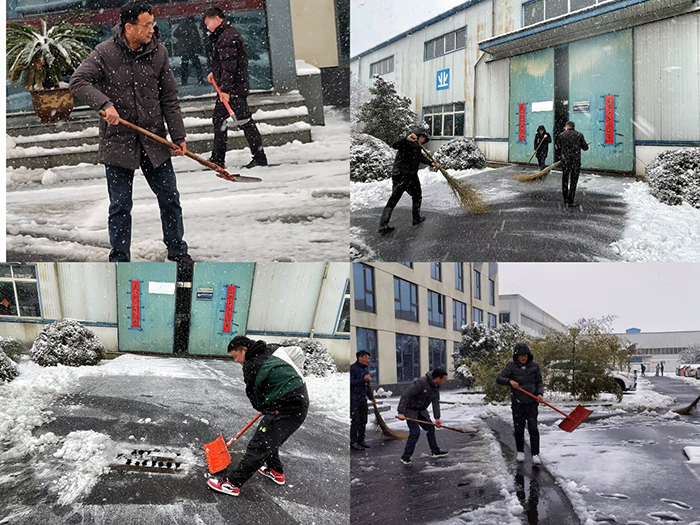 经过两个多小时的奋战,大家终于将公司的主要出入口、主干道等地的积雪全部铲除,为员工和来访客人开辟了一条洋溢着温情的通畅之路。虽然大家的衣服、鞋子都弄湿了,也出了一身的汗,可看着眼前的成果,大家都很有成就感,每个人的脸上都洋溢着开心的笑容。