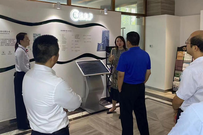 考察团一行首先参观了356体育网站大厦一楼企业文化综合展厅,对356体育网站在绿化水务、生态科技、环卫科技、ayx爱游戏官方app平台入口修复以及健康人居等板块取得的发展成果有了详细的认知,参观过程中,讲解员对于大家的提问逐一进行解答。