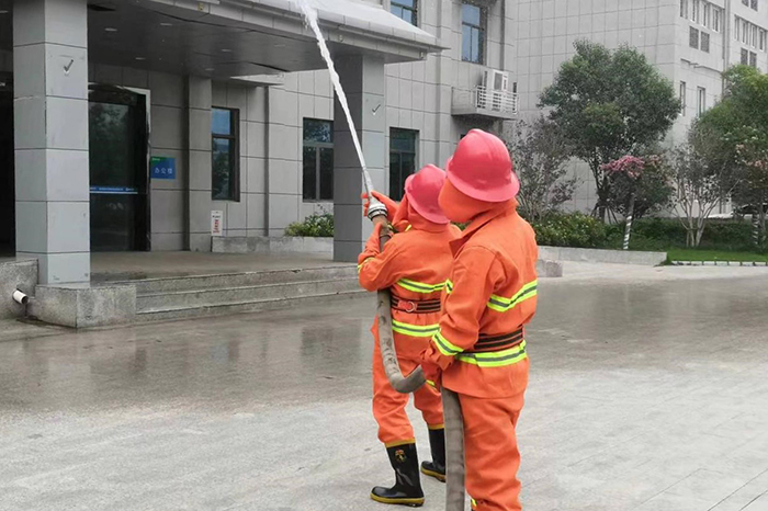 按照演习方案的要求,演习组织部门采用烟幕弹模拟火灾现场。当烟幕弹散发出浓烟时,设备检修组人员到化水配电室切断办公楼的电源;疏散引导组在楼梯口处引导办公室内的工作人员按照“捂鼻、弯腰、沿墙”的防护原则迅速撤离到安全地带;应急救援组组织义务消防队员打开消防箱、连接消防带、打开消防栓进行喷水灭火救援。参演人员动作标准、迅速果断,短时间内将火灾消灭在萌芽状态,保证了员工的生命财产安全。