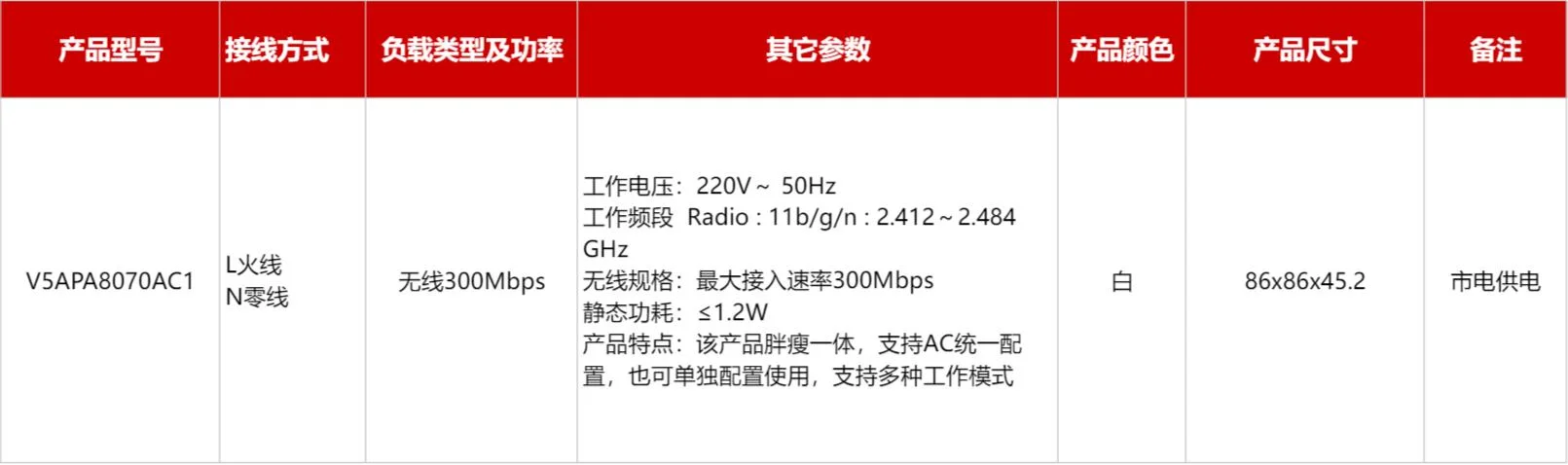 无线AP(市电供电)产品型号:V5APA8070AC1GD
